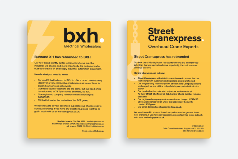 This offered me the opportunity to create a fresh new identity for Sheffield companies Street Cranexpress, a crane service and maintenance company, and BXH, an electrical controls, drives, and automation products stockist.
